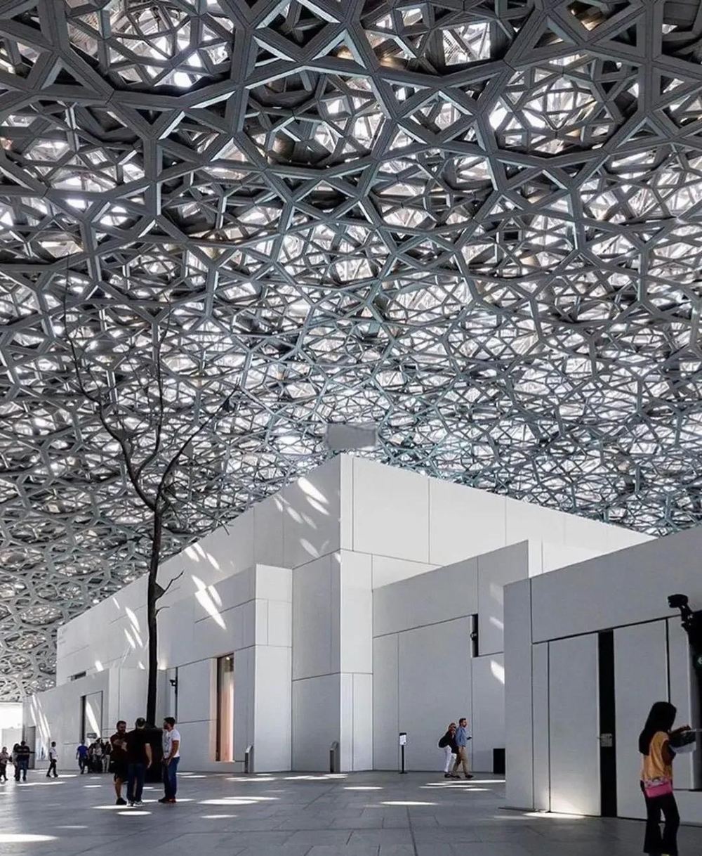 ▲ 建築外立面上精緻的阿拉伯幾何鏤空雕花,在強烈的日照下於地面投下變幻的光影圖案,彷彿一幅動態的藝術畫。