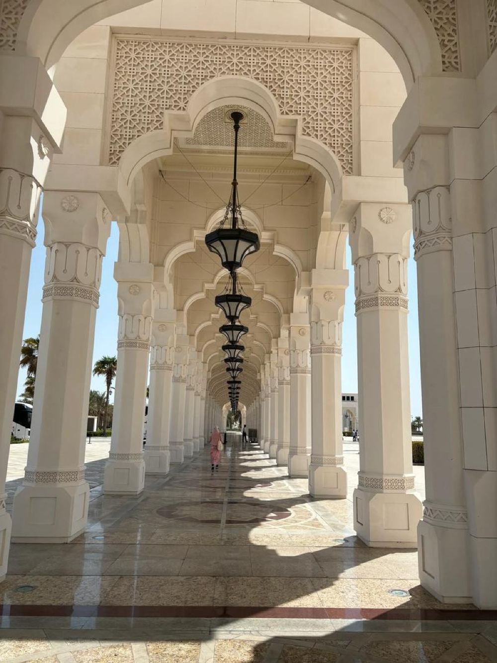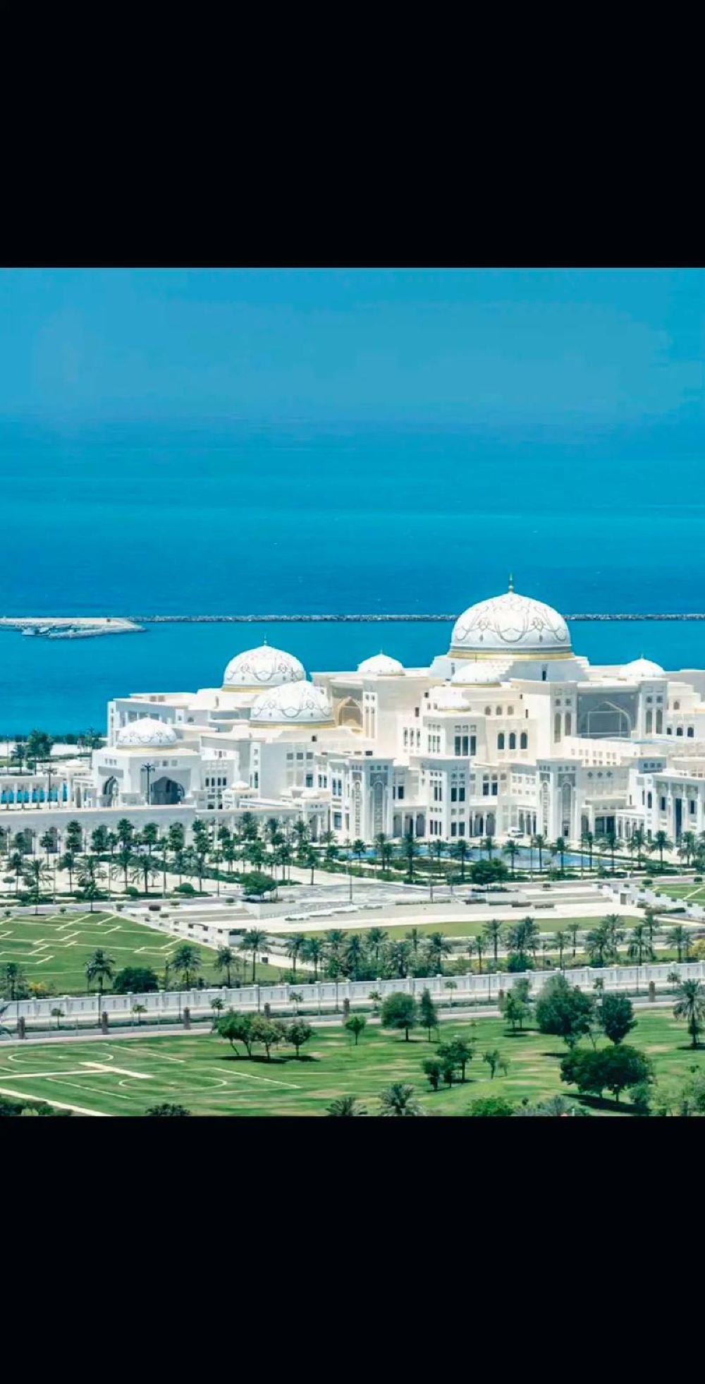 ▲ 白色巨殿與金色穹頂:純白色的宏偉宮殿群在日光下熠熠生輝,中央巨大的金色穹頂直指藍天,展現出阿拉伯宮殿的莊嚴。