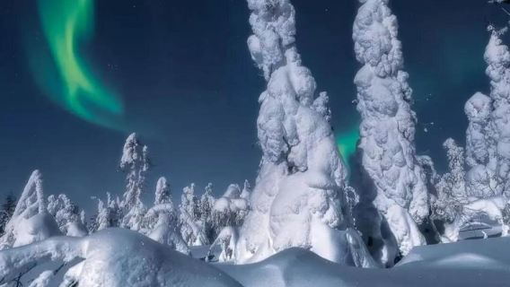 ▲ 在極光圈的童話世界裡飛馳!穿過覆雪松林,掠過冰封湖面,陽光將雪粒照成鑽石般閃耀。當引擎聲劃破北極夜空,身後揚起的雪霧與頭頂舞動的極光交織成畫 —— 這不是電影,是摩爾曼斯克極光公園雪地摩托的日常!