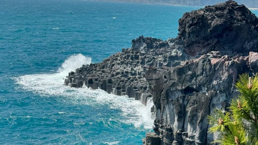 作為著名的自然景觀保護區,其內部形成了獨特的柱狀節理帶。在海岸線上可見層層疊疊的石柱,景象極為壯觀。這種獨特自然景觀形成的主要原因是漢拏山噴發的熔岩流入海中冷卻凝固所致。由大小不一的方形或六角形石柱構成,其精巧紋理宛若石匠精心雕琢。這些整齊矗立於海面的石柱,令人不禁為大自然的神奇造物嘆為觀止。
