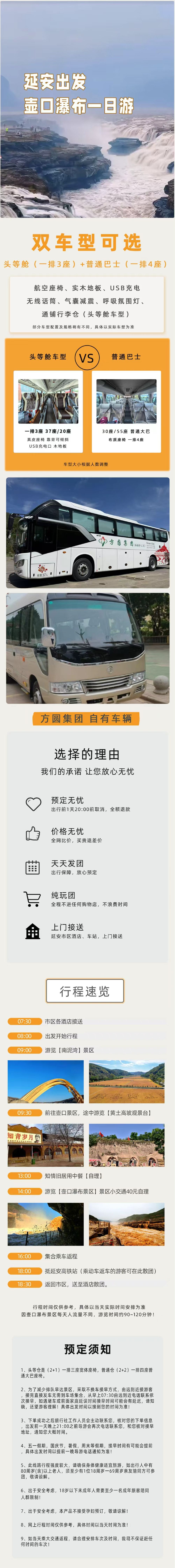 注意:現在壺口日遊進入淡季。車型更改安排如下5座舒適車型,豪華7座商務,15人以下安排20座仿考斯特。