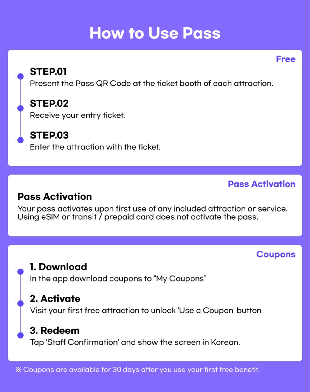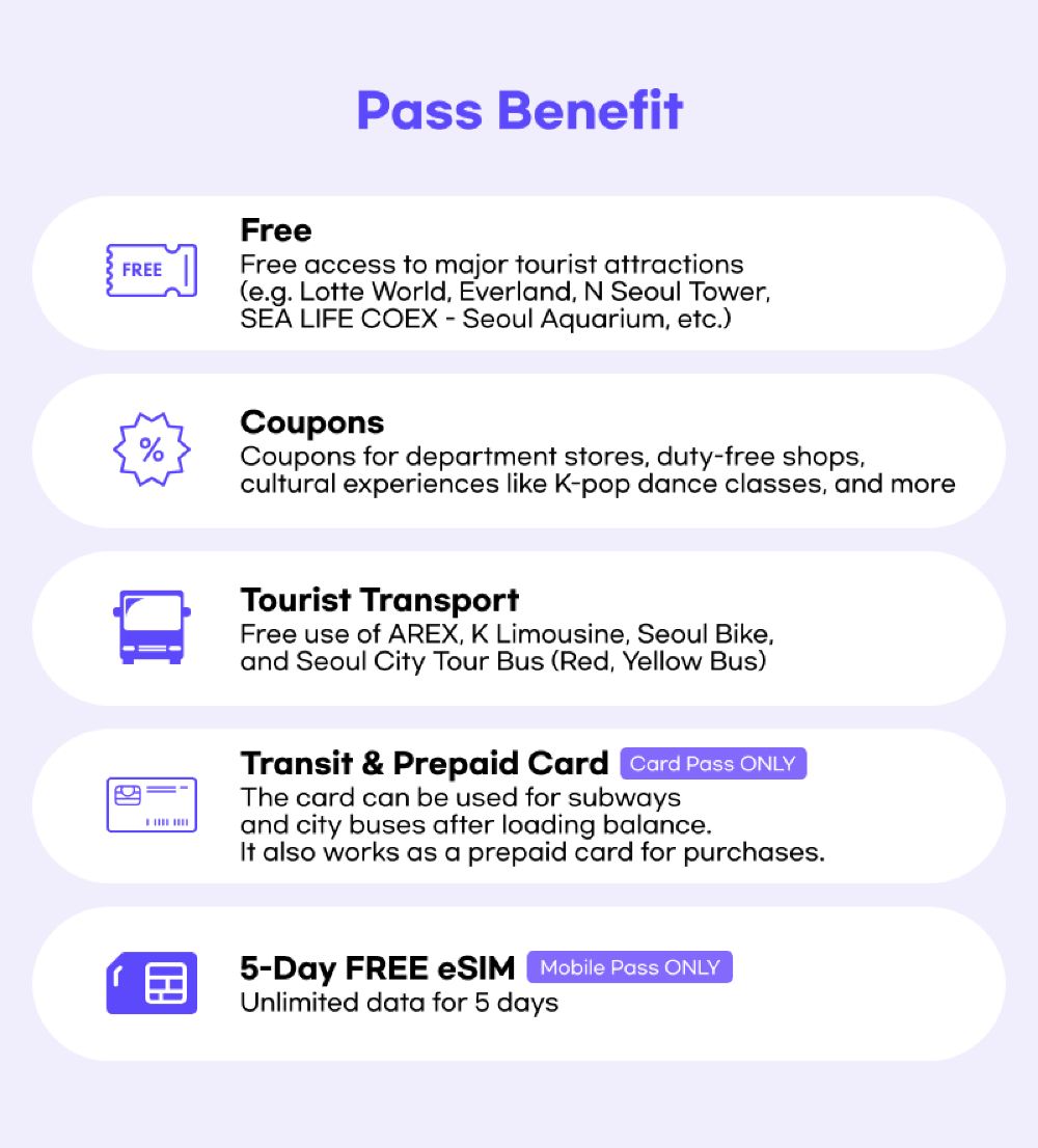 3. 利用Discover Seoul Pass訪問旅遊景點時,必須攜帶實體卡,沒有實體卡時不能使用。
