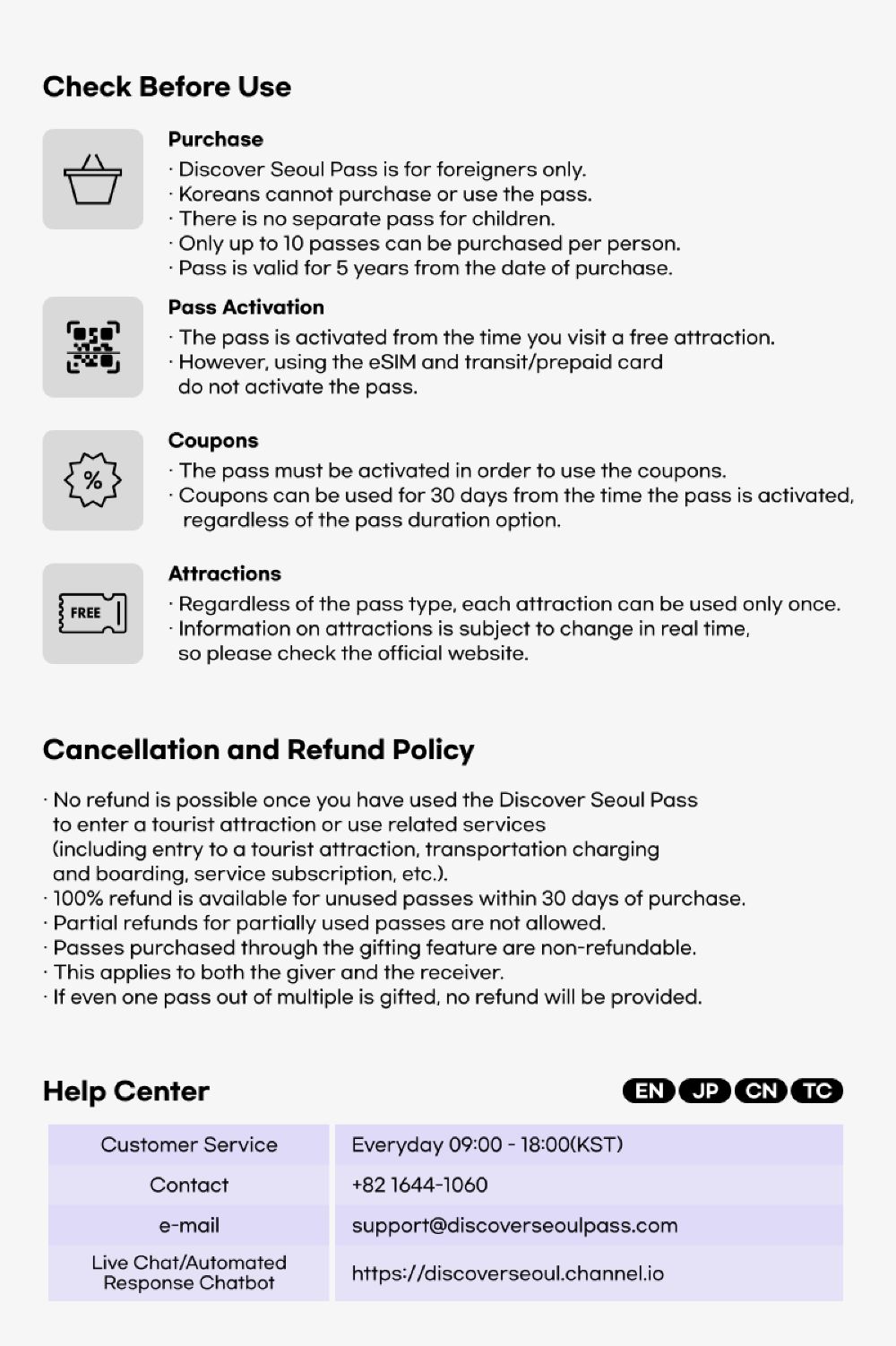 8. 對於在非正規門市購買的Discover首爾通行證使用糾紛,恕不負責。