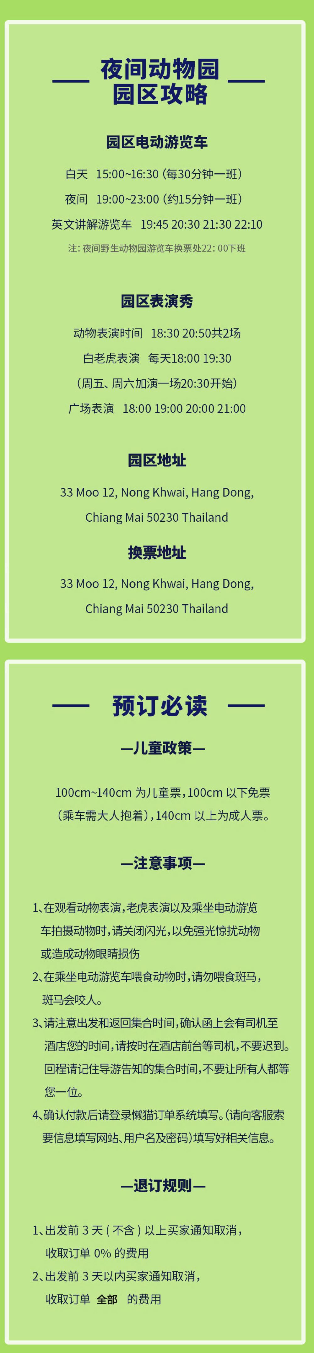 取消了雞肋的導遊,這點很贊!幾年前在tb報過一次小團,導遊很不敬業導致整個流程很累很煩躁。這次完全是自由活動,入口處會有工作人員發時間表幫你圈出來各個表演的時間和路線,非常貼心!清邁夜間動物園是一個每次來了都想再去的地方🤣,總體超讚