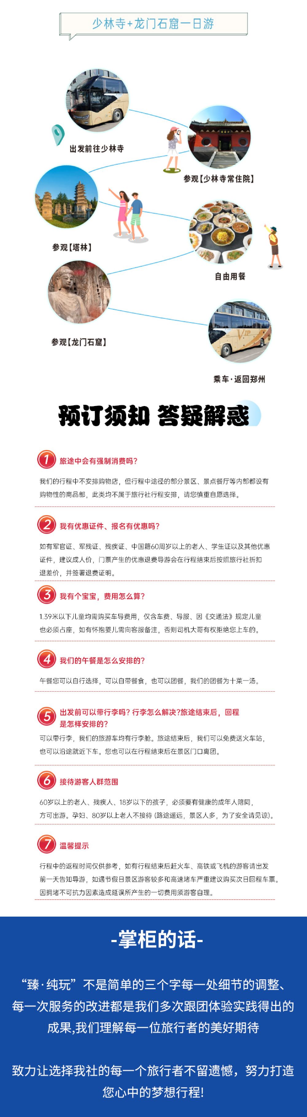 1.假日如(春節、五一、十一等)出行人較多高速易堵為錯開出行高峰出發時間會提前,為節省時間不再提供上門接服務請自行前往集合地點集合。謝謝您的配合。