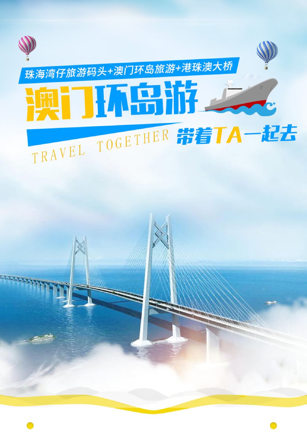 珠澳海灣遊船票 澳門環島遊+港珠澳大橋遊(珠海灣仔旅遊碼頭)日遊/夜遊 成人票