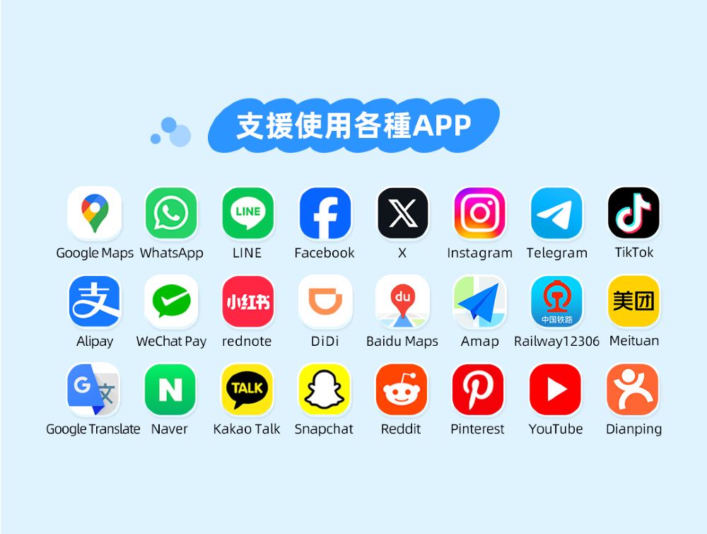 • 網路:China Mobile(中國大陆)、SmarTone(香港)、CTM(澳門)
