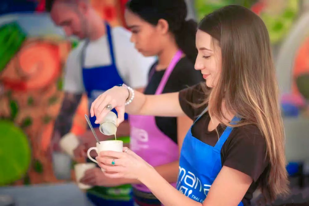 場地乾淨整潔,導遊是泰國當地的姑娘小夥兒,也有羣提醒我們集合時間,總的來說人很熱情,細心的介紹每一個食材,因為配料比例學校都有幫我們做好,所以做出來的飯菜非常好吃,好評!