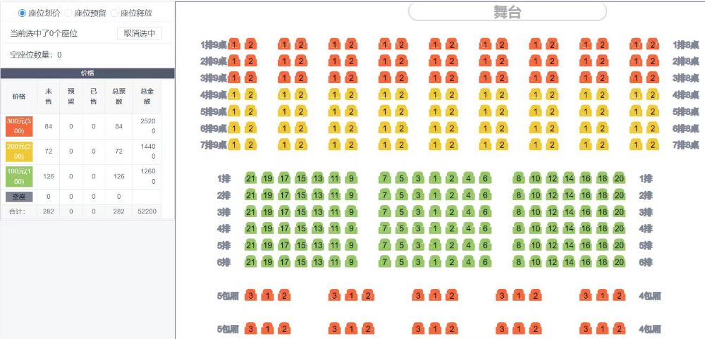 注意:含廣德樓戲園演出的選項為100元檔位票型,若需要其他票檔,聯絡客服補差即可。以下為劇場座位分佈圖: