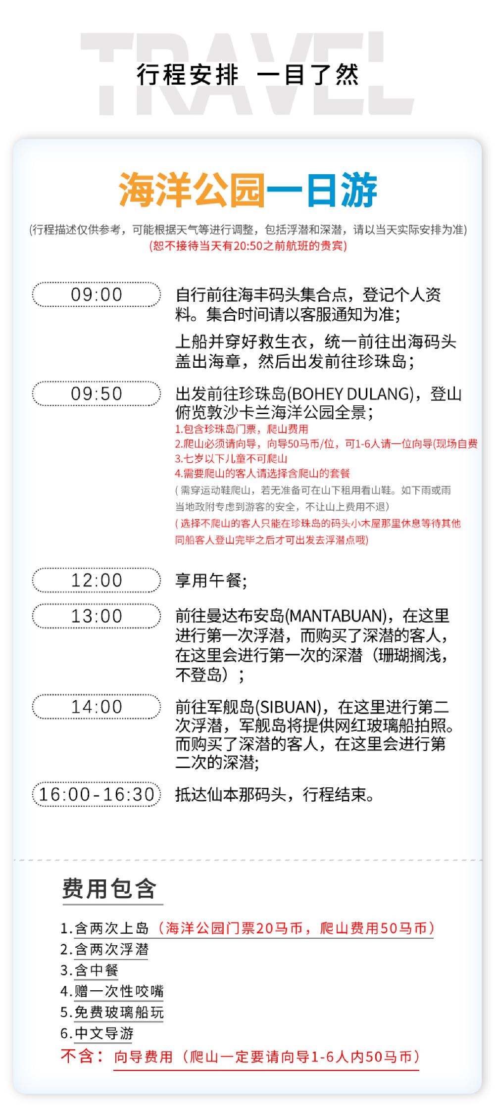 3個島,包括兩次浮潛一次登山,物有所值。