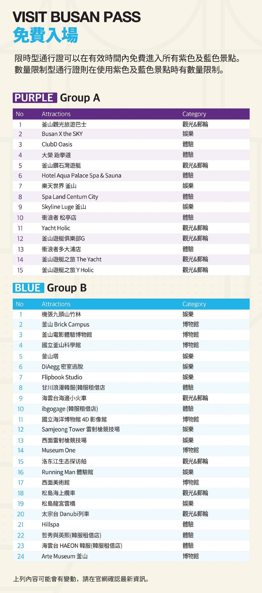 3. 藝術博物館及釜山兒童博物館自2025年1月1日起由A組變更為B組。