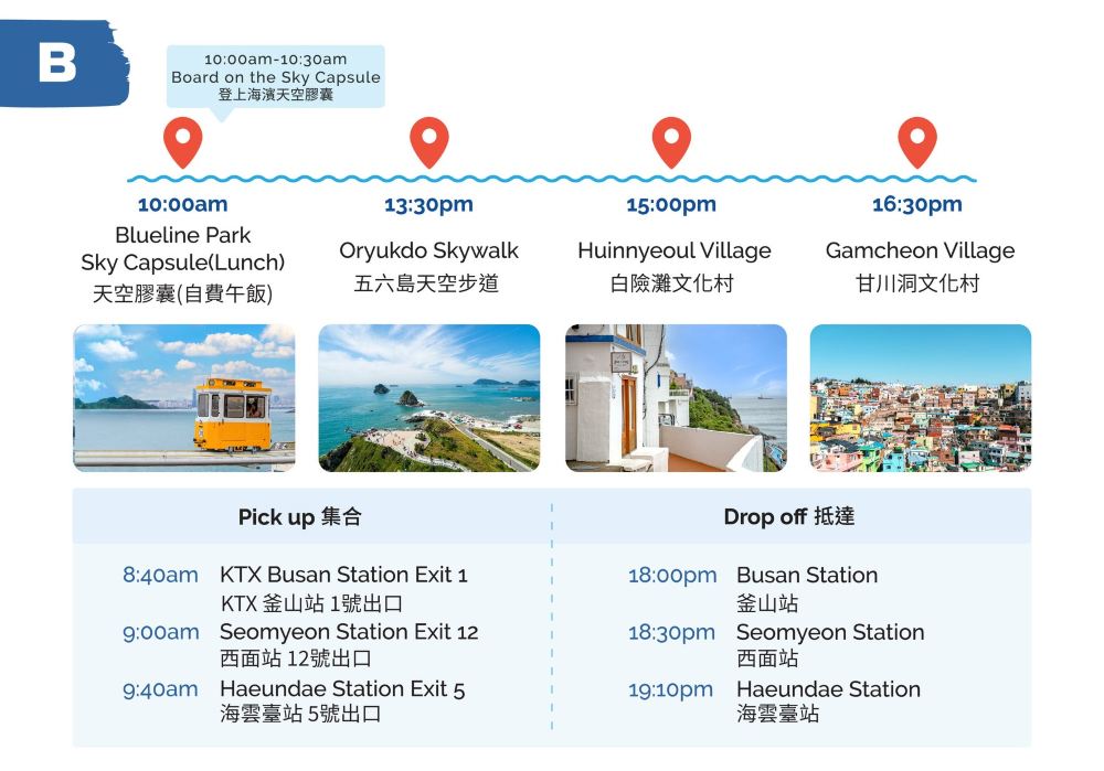 釜山海雲臺藍線公園天空膠囊+五六島天空步道+白淺灘文化村+甘川文化村一日遊 (天空膠囊門票保証 • 網紅打卡 • 韓旅局美食推薦)