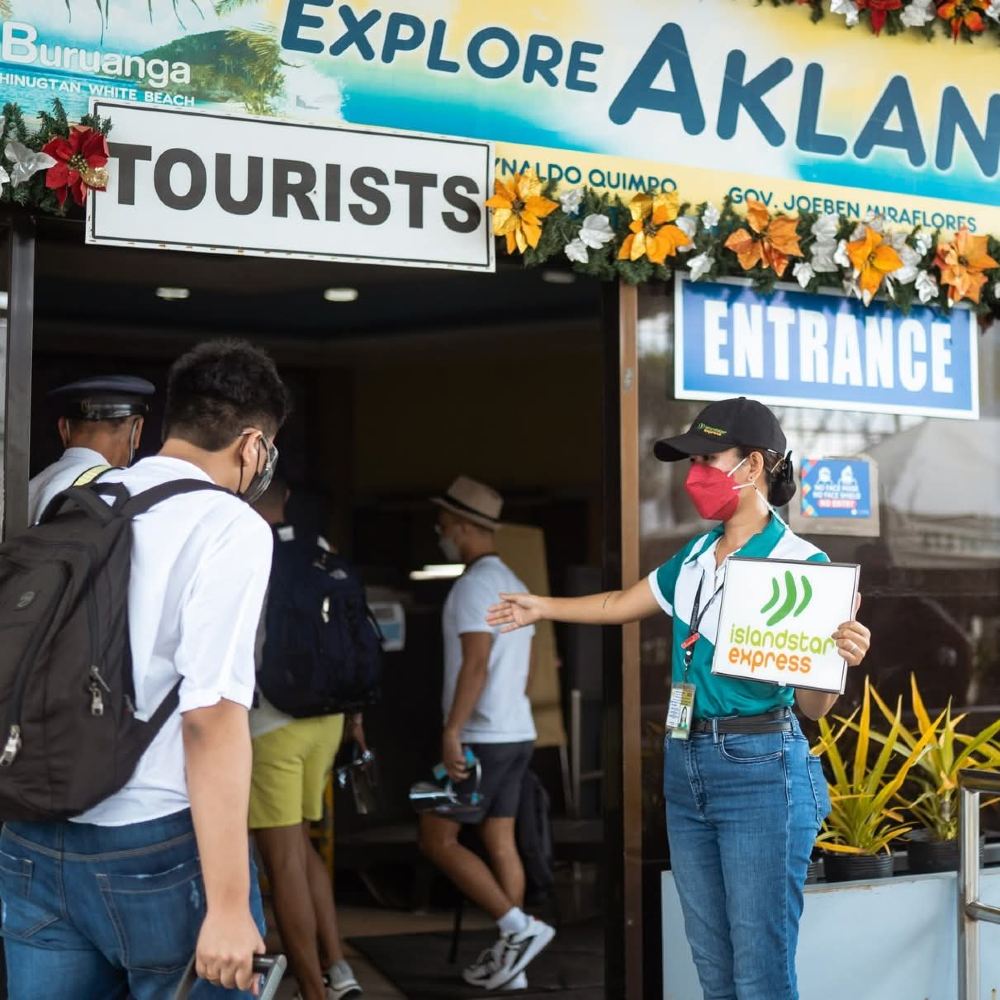 從機場出口處的抵達大廳前方櫃檯,搭乘前往 Caticlan Jetty Port 的車輛,再轉乘船隻至長灘島,最後搭車前往飯店下車。