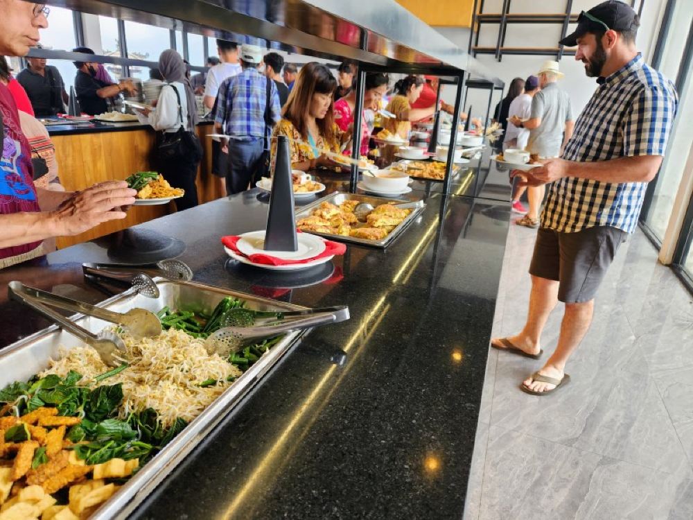 ▲觀景台自助午餐。京打馬尼(Kintamani)觀景臺附近的自助午餐提供了多種選擇,讓遊客在享受壯觀的巴都魯山(Mount Batur)和巴都魯湖(Lake Batur)美景的同時,也能品嘗到當地的美食。