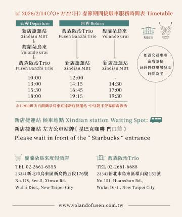 - 旺季期間(每年 1 - 3月 / 10/1 - 12/31):平日、假日、連續假日為60分鐘泡湯體驗