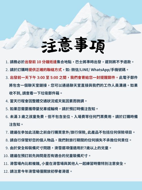 很棒的體驗,但是我覺得滑雪的時間有一點短,可以再早一點出發,晚一點回來,因爲我們後來有加購5個小時的纜車券,但是因爲排纜車的時間很久,人很多,結果只能玩到兩次,所以感覺有點後悔再加購。