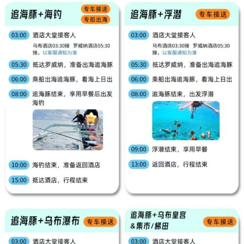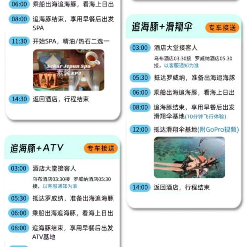 峇里島羅威納追海豚一日遊【可選浮潛海釣漂流火山ATV滑翔傘】