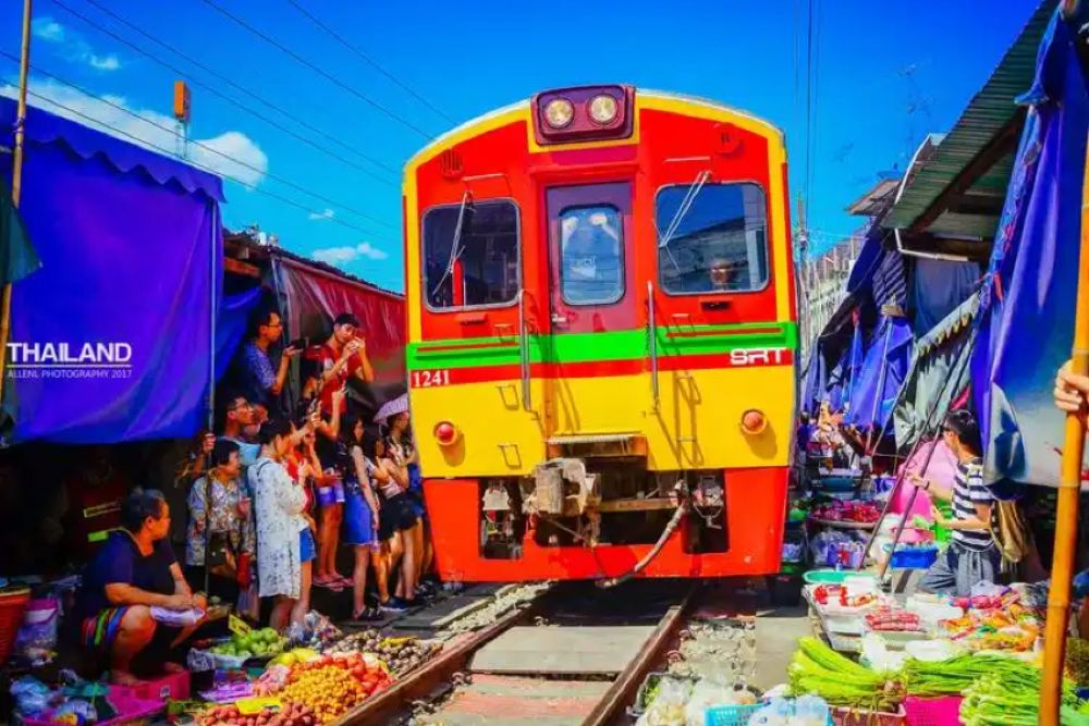 ▲ 第一站: 美功鐵道市場 這是一個極具特色的景點,緊密貼近當地人的生活。在這裡,您可以親身體驗火車從身旁穿過的獨特場景。
