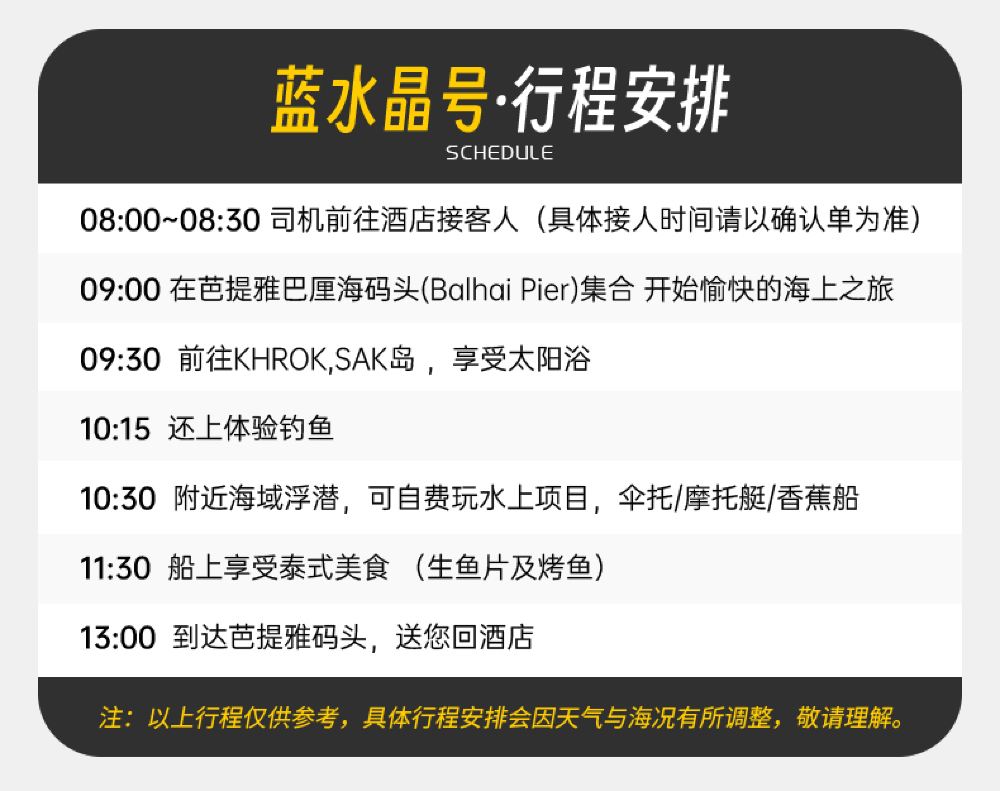 芭達雅雙體遊艇出海半日遊 KROK島浮潛海釣-藍水晶號