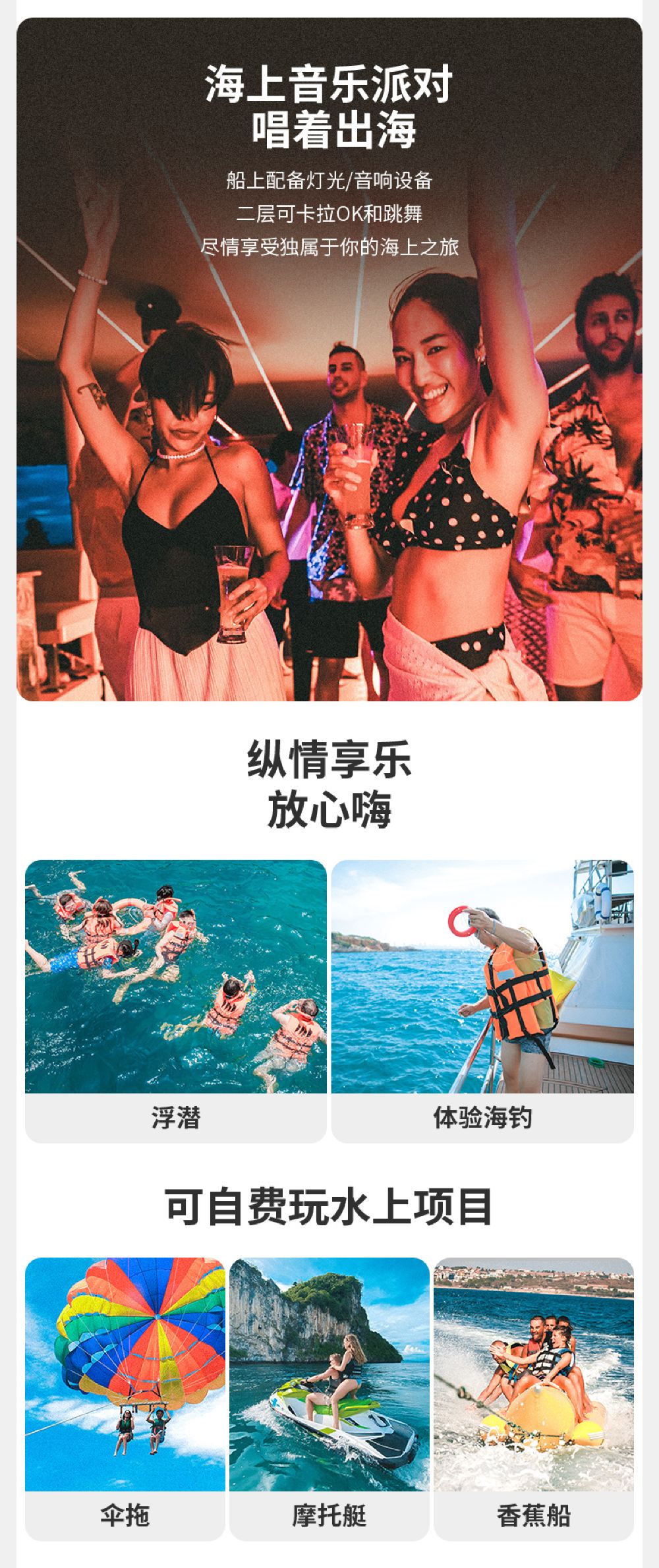 浮潛、海釣、陽光沙灘、甲板派對,讓你一次玩個夠;