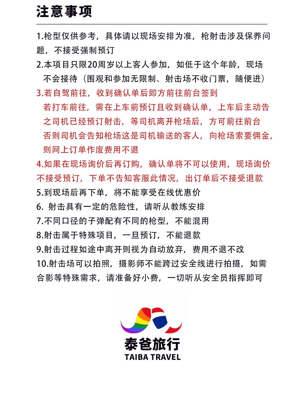 2.若搭計程車前往,需在上車前預訂且收到確認單,上車後主動告之司機已預訂射擊,等司機離開槍場後,方可前往前台否則司機會告知槍場這是司機輸送的客人,向槍場索要佣金,則網上訂單作廢費用不退