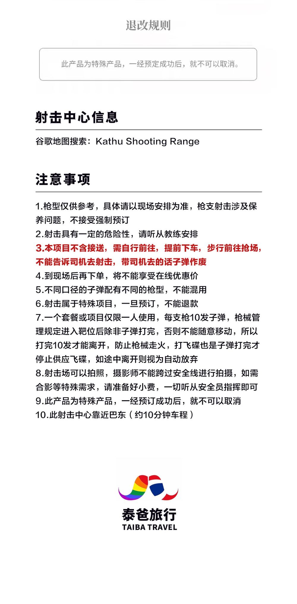 2.若打車前往,需在上車前預訂且收到確認單後,再出發前往射擊場,上車後主動告之司機已經預訂射擊,等司機離開槍場後,方可前往櫃檯否則司機會告知槍場這是司機輸送的顧客,向槍場索要傭金,則線上訂單作廢費用不退