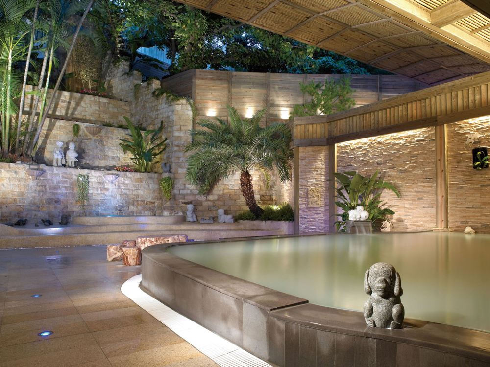 露天風呂包含9種SPA功能池,如衝擊SPA、氣泡浴、浮浴等等