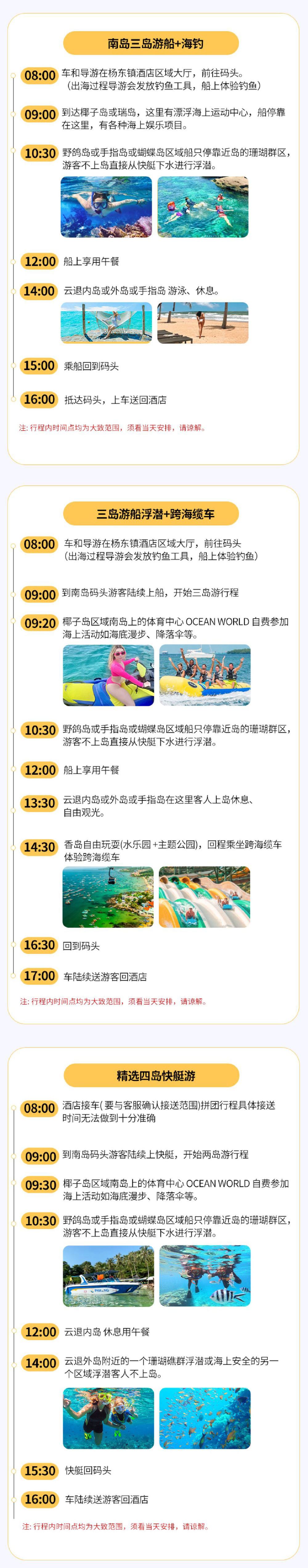 【多線路可選】南島浮潛/南島三島遊船+海釣/三島遊船浮潛+跨海纜車/四島快艇遊/夜釣墨魚+海上落日