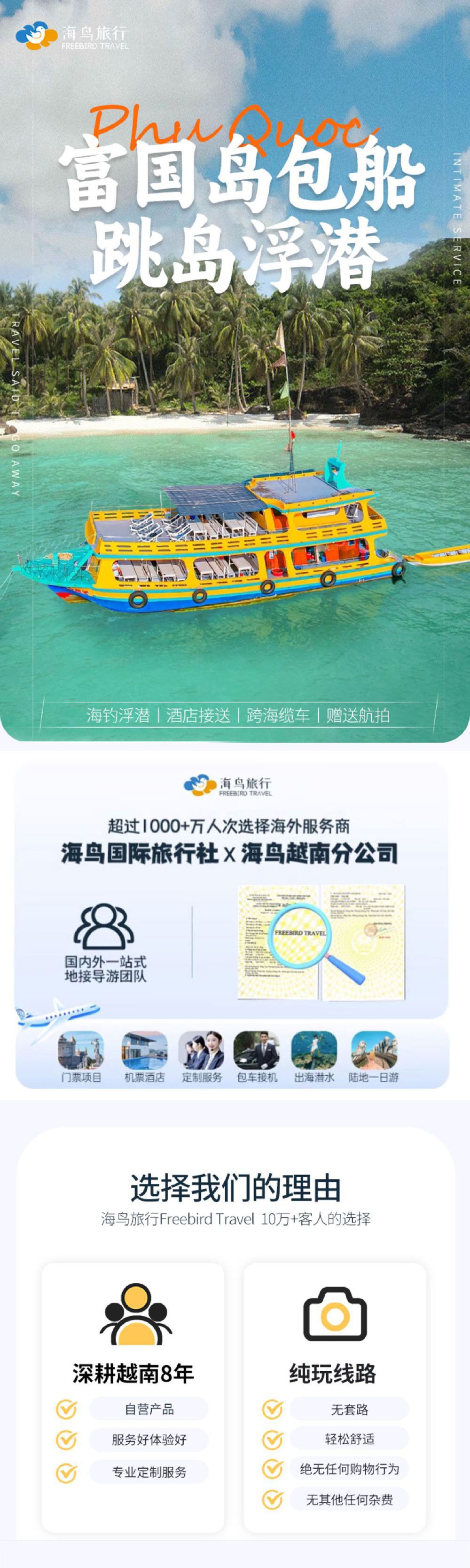 富國島三島跳島一日遊|快艇出海+珊瑚礁浮潛+贈浮潛設備+旅拍