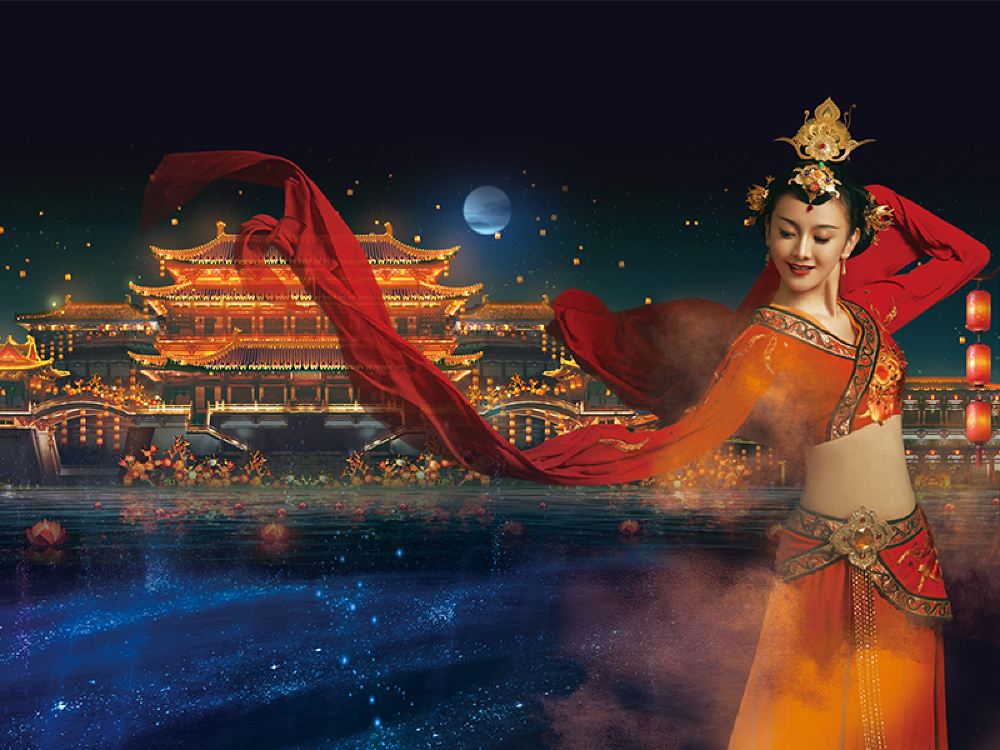 大型歌舞《西安千古情》以一位華裔少女回國尋根的故事為主線,開啟一次尋找民族記憶之旅,分為《文明之光》《灞河之洲》《大禹治水》《大唐盛世》《絲綢之路》等場。《西安千古情》不是簡單地表達歷史,而是用獨特的藝術表現手法,擷取了西安文化的片段,為觀眾奉獻出一台喜聞樂見的作品。這裡有灞柳依依間的浪漫詩情,這裡有大唐長安的盛世華章,這裡有萬里揚沙的絲路傳奇,這裡有復興之路的錚錚強音。