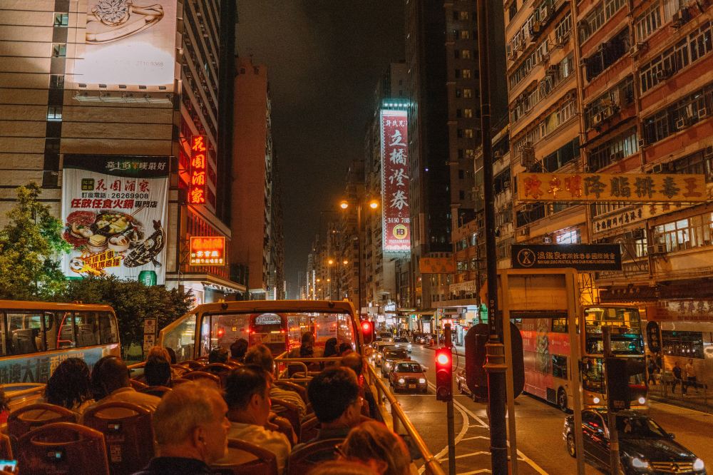 搭乘約40分鐘的敞篷巴士,欣賞香港島及九龍半島的夜景(僅限九龍一側駕車)