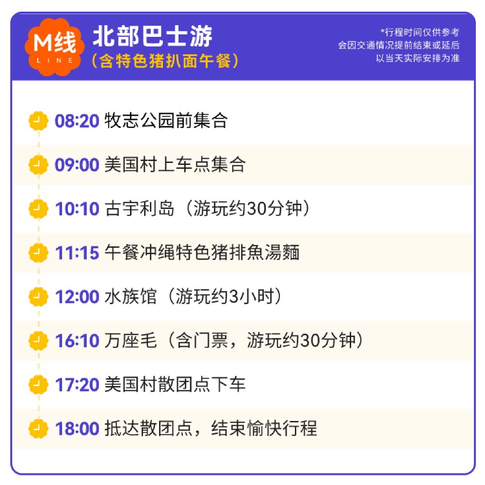 沖繩北部實在是太遠了。建議還是選擇一日遊。中文導遊,交流完全無壓力,還會給你介紹一些沖繩歷史和每個景點的特色。第一次來沖繩的話北部一日遊還是要安排一下的。美國村我是覺得沒必要去,地方不是很大。就是看下日落🌅當然很喜歡日落的可以去去。北部的海水真的很乾凈,都不需要離島。