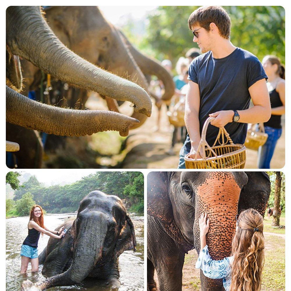 - 09:00 抵達大象營-更換制服-大象知識導覽-製作維生素球-餵食並互動-與大象散步、洗澡