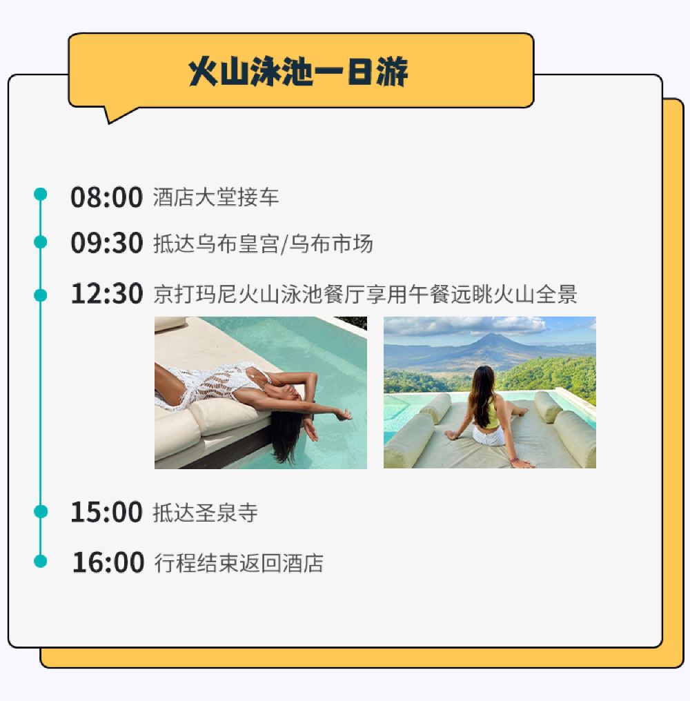 峇里島火山溫泉一日遊【遠眺火山丨可選梯田/聖泉寺/網紅秋千】
