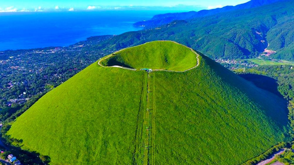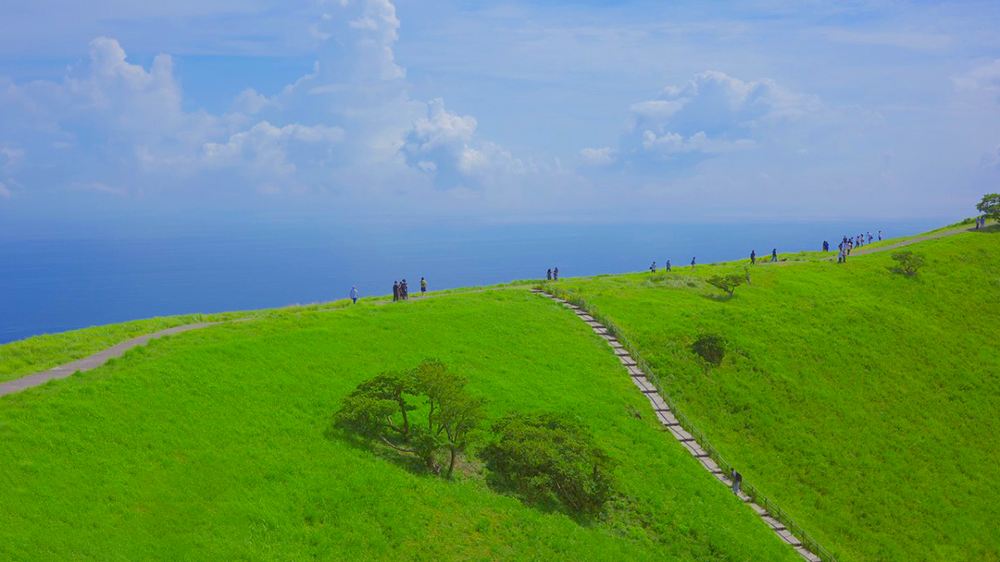 ▲ 大室山: 「正因為會消失,我才想建造出足以溫暖人心的城鎮,即便只存在於記憶之中——立花瀧《你的名字》」 如果這座城鎮存在,建在大室山頂漫步在大室山頂,一面是山一面是海,抹茶山的綠意與太平洋的遼闊盡收眼底,彷彿置身在宮崎駿的動畫世界裡~