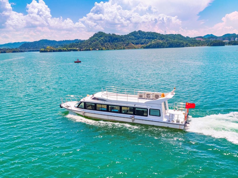法拉帝620(11座):這艘義大利遊艇,擁有出色外表的時尚遊艇,主甲板和飛橋區寬敞的社交空間,下層甲板有兩間大型客臥和一間與船體同寬的帶視野開闊大窗的主臥,配上千島湖風景如畫的風光,會讓你非常難忘。