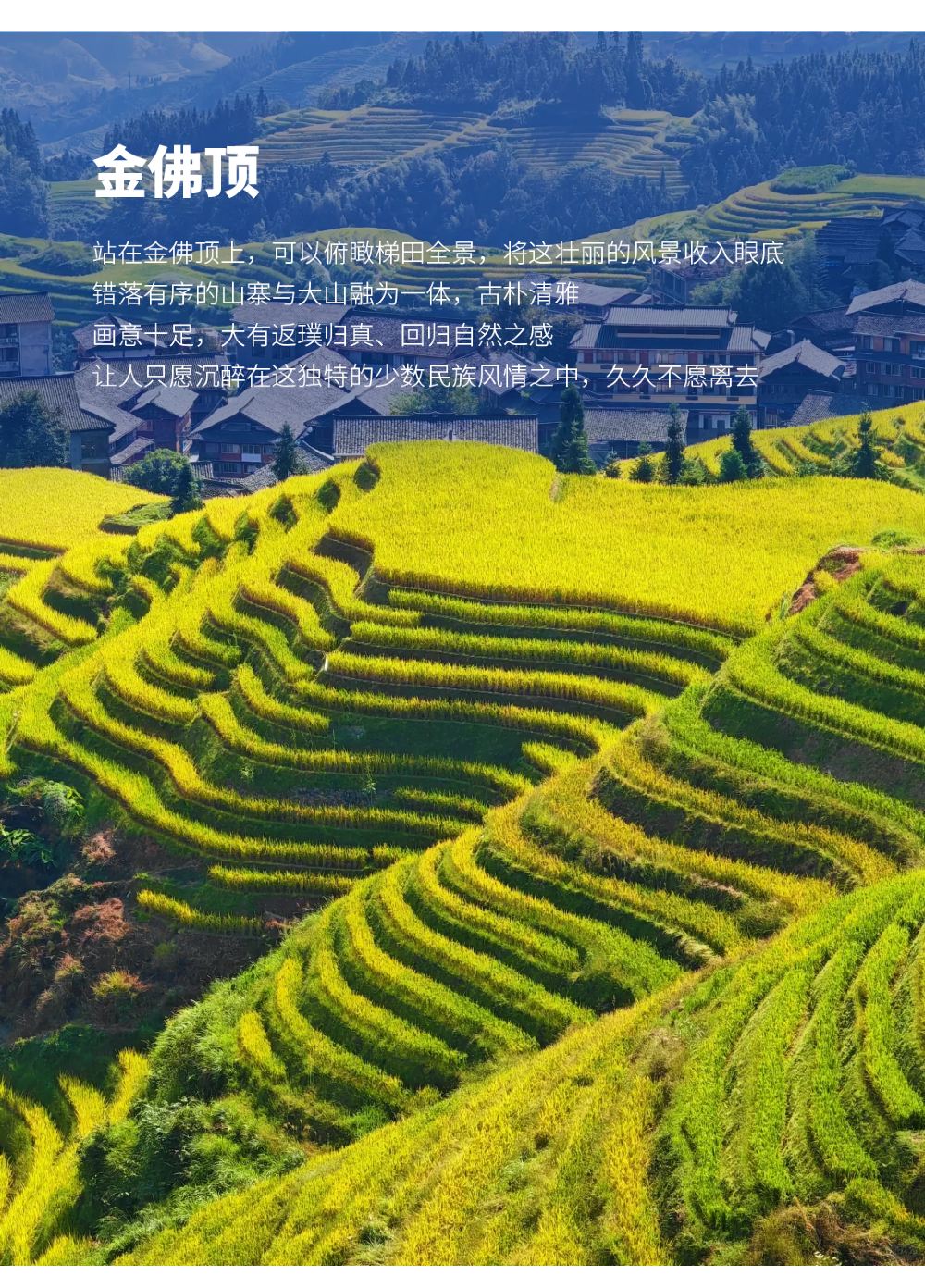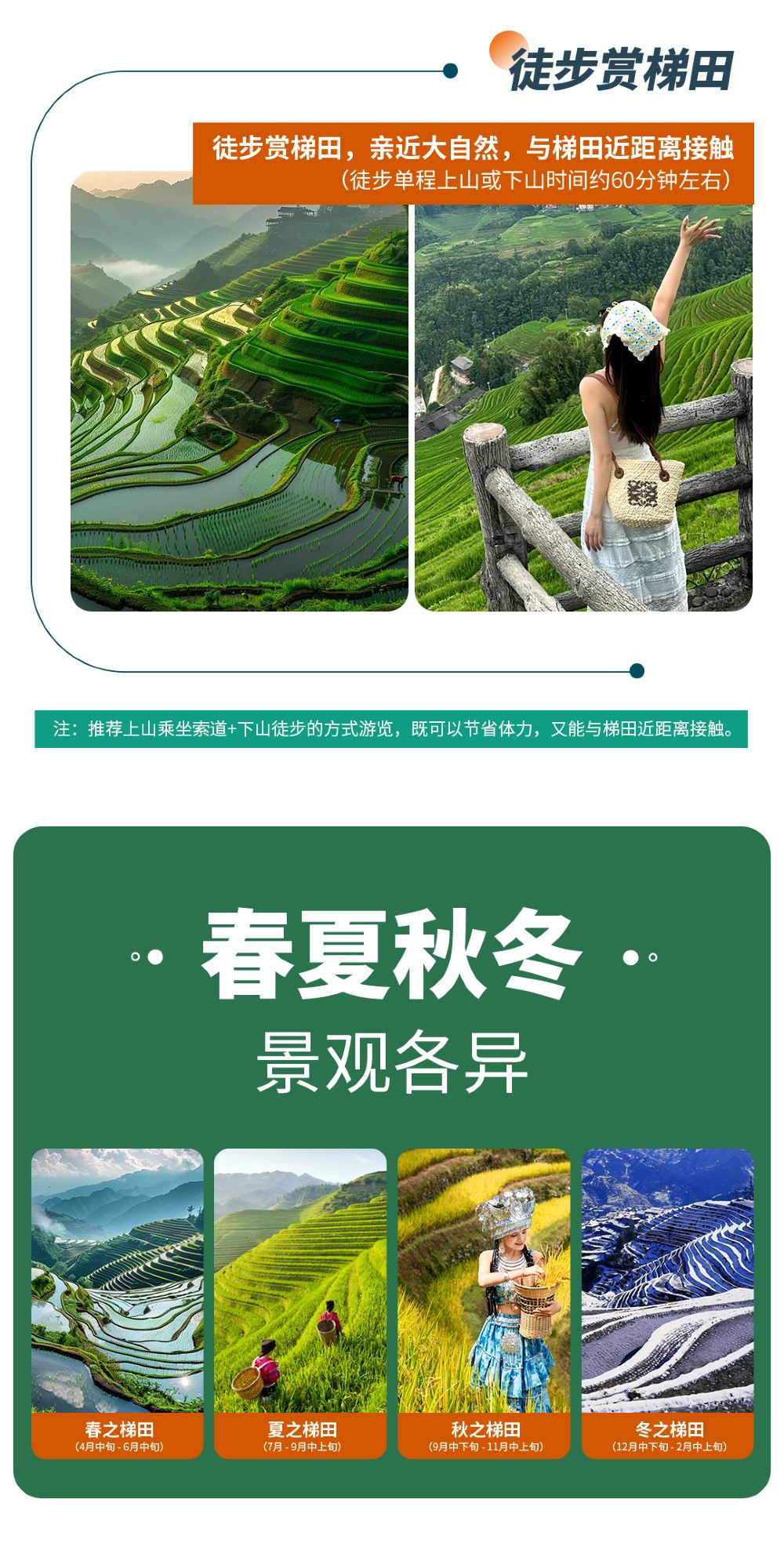 真的被驚艷到!全程無尿點,司機靠譜、車舒服、景點美炸,關鍵人少不用擠,隨手一拍就是大片!司機師傅是本地瑤族大叔,山路彎道完全不暈,還一路講梯田傳說,熱情到像自家親戚~商務車空調給力,本暈車人狂喜!早上市區接人,直奔黃洛瑤寨看長髮瑤妹跳舞(文化感拉滿!),中午到金坑梯田。9月稻子剛黃,層層疊疊的金色波浪,美到窒息!索道可自選(我們沒坐,徒步20分鐘也超爽),到金佛頂視野無敵,雲海+梯田同框,手機內存直接拍爆。8人團真的香!不用等拖拉隊友,自由活動時間夠夠的,還能蹭到攝影師隊友幫忙拍合照hhh