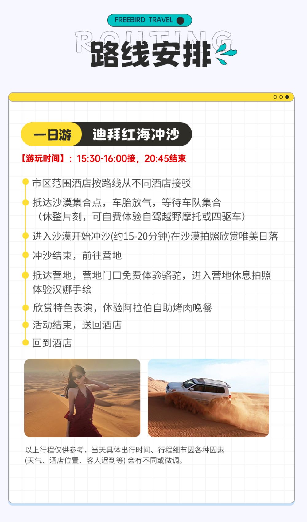 這個一日遊小團還是不錯的,6人一車,會有司機來酒店接送。衝沙還蠻刺激的,在後排坐的東倒西歪的,只能緊緊拉住扶手。沙漠拍照真的很出片,建議紅色系或者廢土風穿搭,怎麼拍都好看。