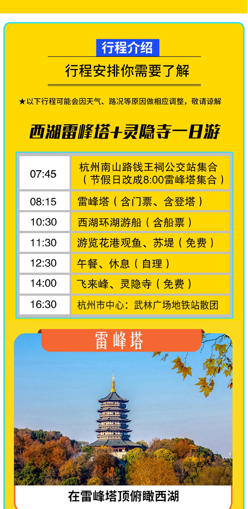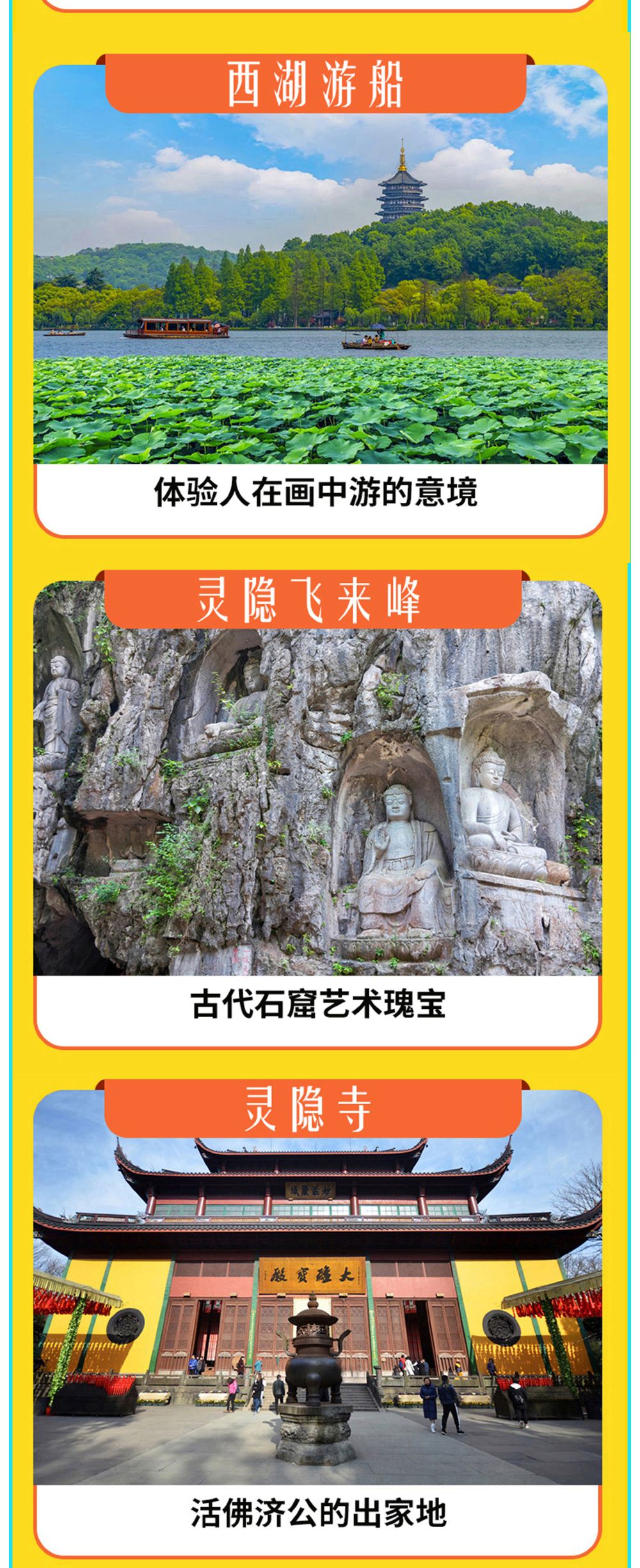 杭州雷峰塔+西湖遊船+飛來峰+靈隱寺一日遊