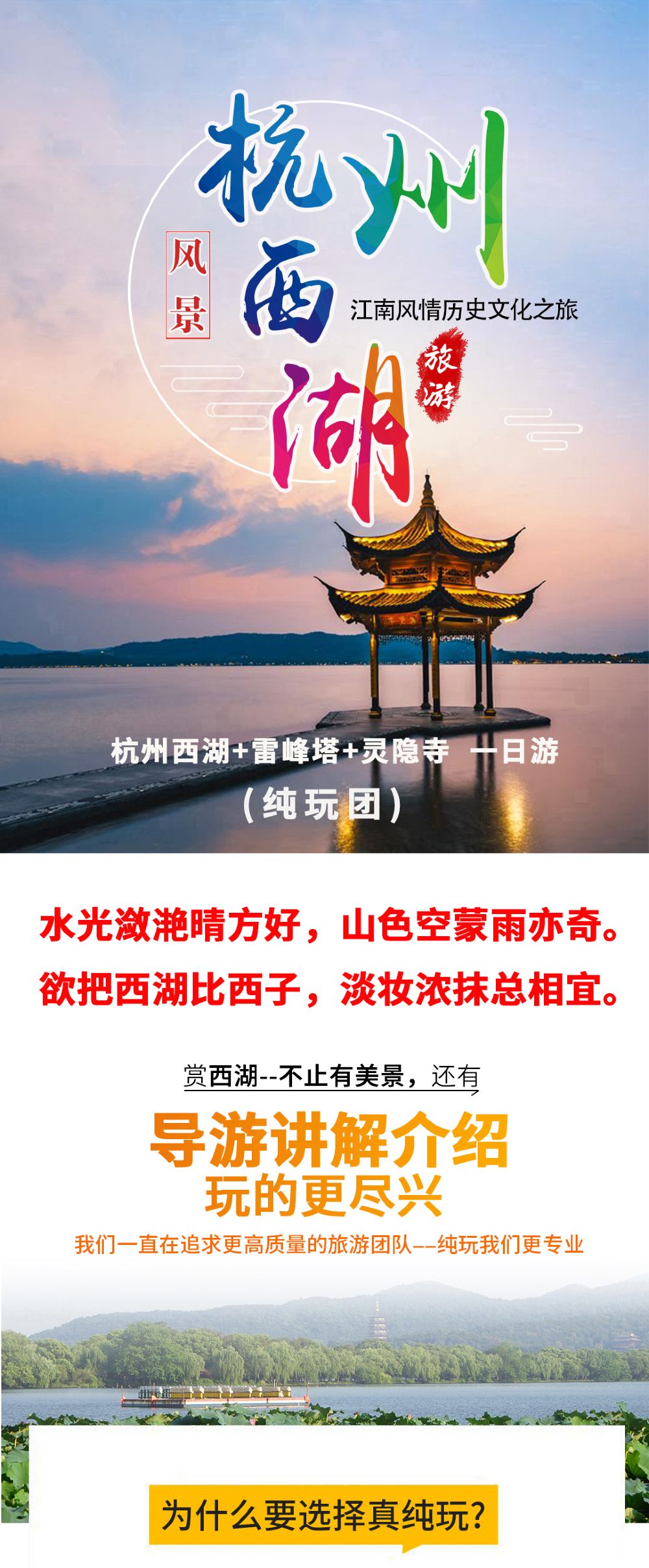 真純玩:杭州西湖+西湖遊船+雷峰塔+靈隱寺一日遊+導遊講解