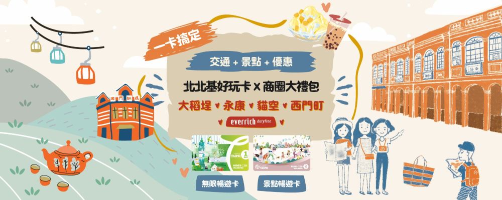 除了超多好玩的景點以及有收藏價值的悠遊卡之外,景點暢遊卡也配合台北永康、貓空、大稻埕3 大商圈推出大禮包,讓你有吃有玩優惠拿不完!