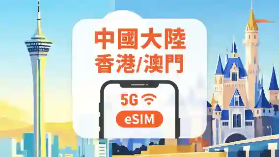 中國大陸·香港·澳門 5G eSIM | 可用 ChatGPT & TikTok | 1-30、365天超多方案可選 | 即買即用 | QR Code