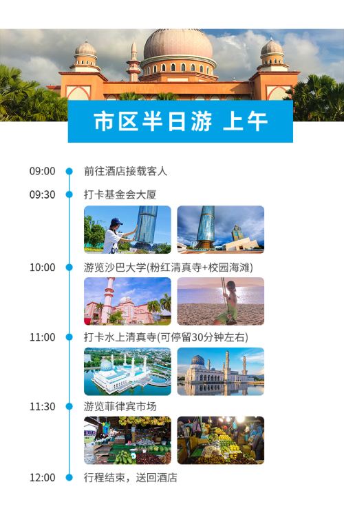 亞庇市區半日遊沙巴大學粉紅色清真寺+水上清真寺+丹絨亞路海灘