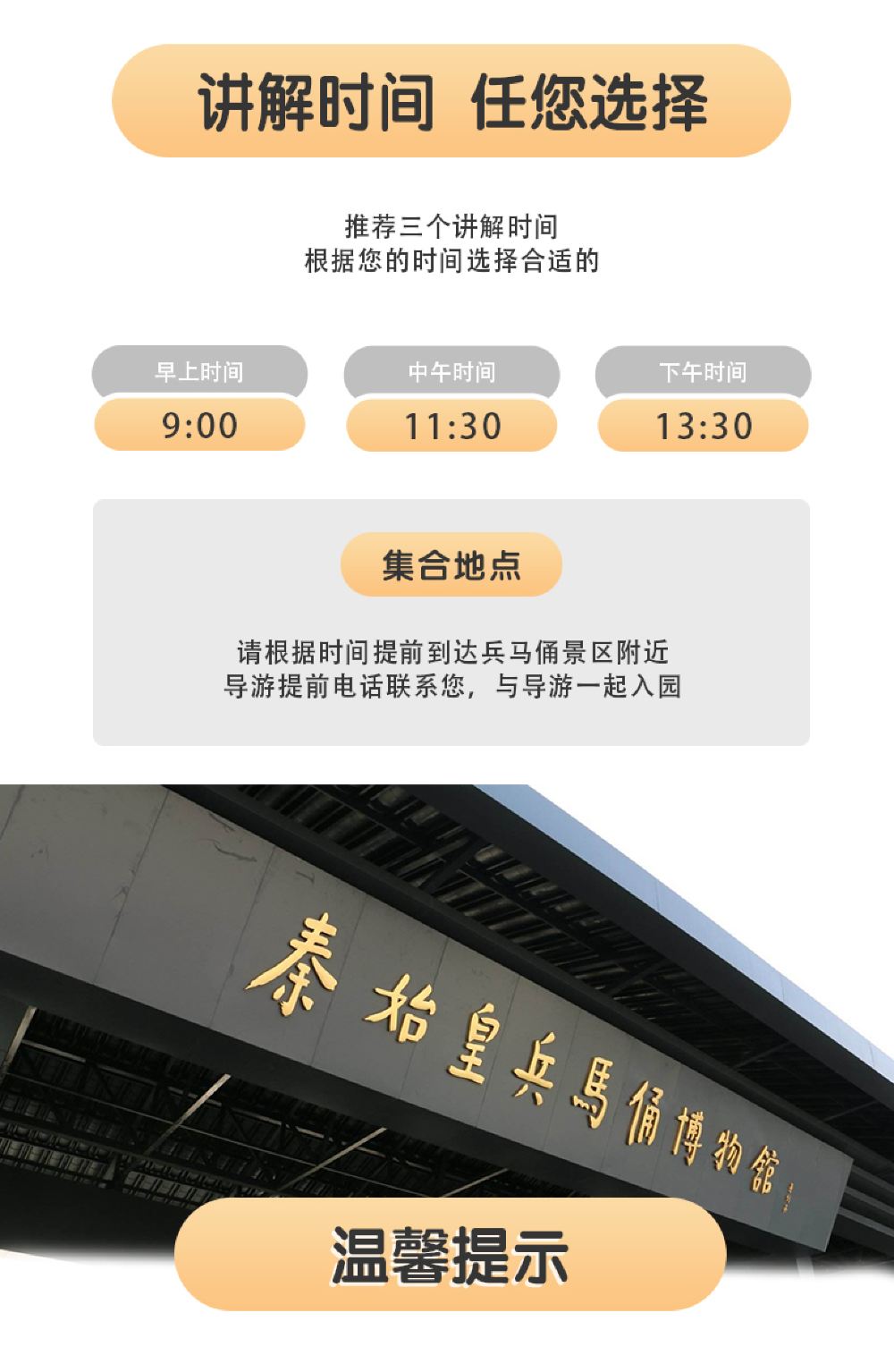 1.本產品為獨立包團講解,一單一團(不拼團)請自行預約兵馬俑設施入場門票。