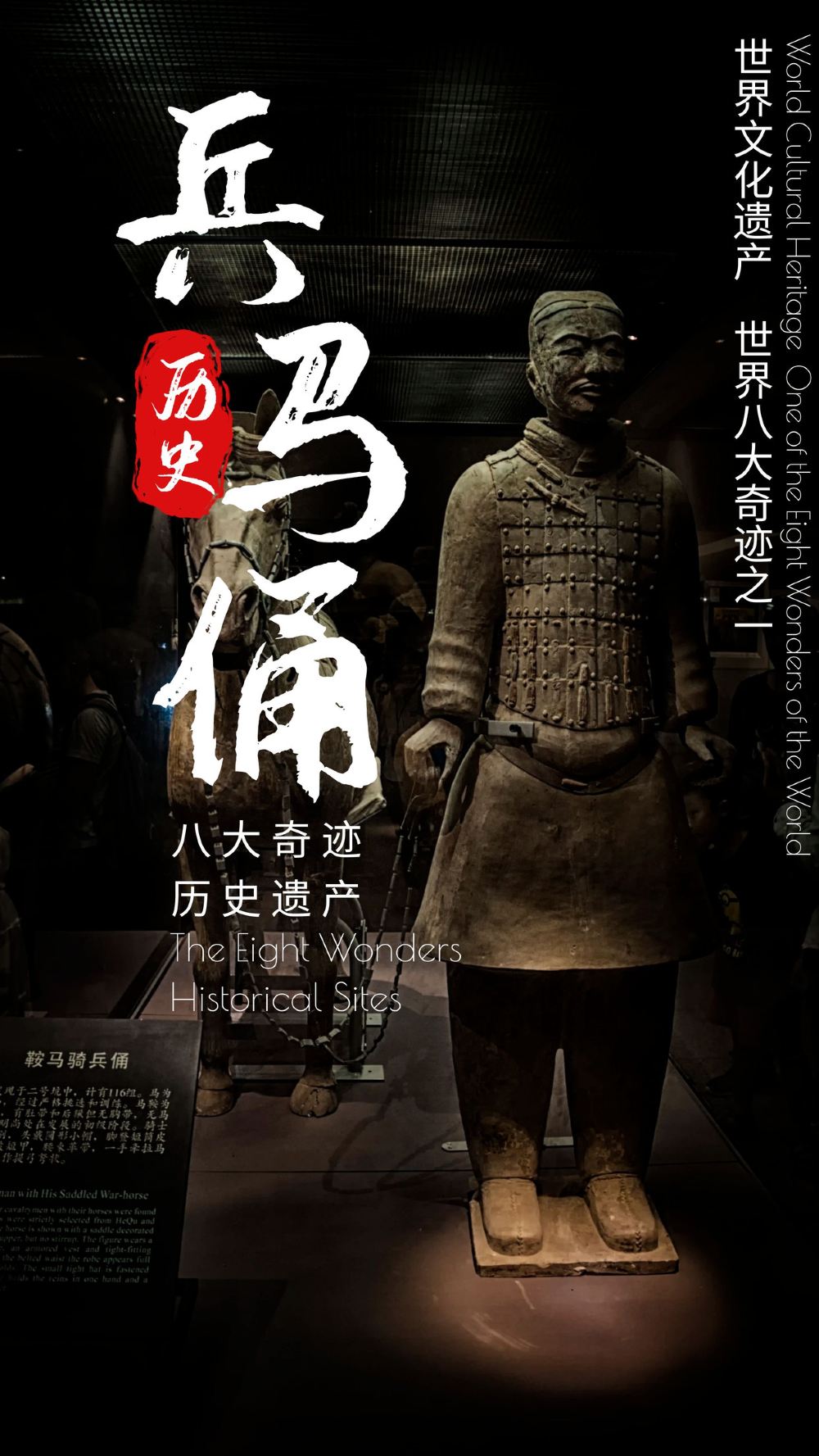 秦朝(西元前221年-前207年),是由戰國時期的秦國發展起來的中國歷史上第一個大一統王朝。兵馬俑是秦始皇帝陵的一個陪葬坑,裡面有很多兵馬(戰車、戰馬、士兵)形狀的殉葬品,被譽為「世界第八大奇跡」,是二十世紀考古史上的偉大發現之一。