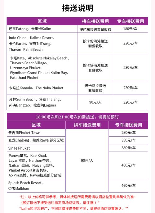 kalim卡里姆區域範圍較廣,不同飯店的接駁費用可能有所不同,請先提供飯店位置給線上客服確認後再下單哦~