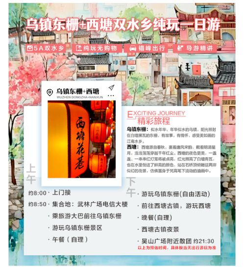 【舒適跟團】雙水鄉組合,優化遊覽線路,不緊不慢中遊覽兩大5A級水鄉古鎮。