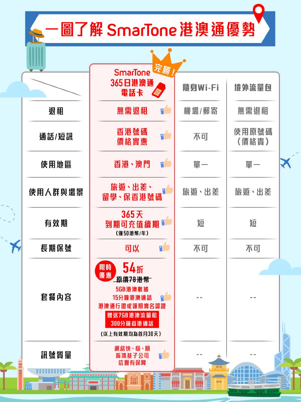 1. 「5GB港澳通用數據」及「15分鐘免費港澳當地通話」自動生效免申請。