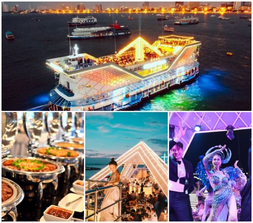 登上Ocean Sky Pattaya 芭達雅海洋天空晚餐遊輪,在泰國芭達雅最迷人的地方度過一個美妙的夜晚。這趟獨特的遊輪之旅提供美味的自助餐,為您呈現最精緻的泰國美食和各種國際美食。除了用餐之外,芭達雅海洋天空還提供一場精彩的表演,由才華橫溢的異裝舞者和頂級男舞者表演,包括服裝更換、完整的舞蹈表演和觀眾互動,讓您度過一個有趣而難忘的夜晚。無論是與朋友、家人還是您的另一半一起,所有年齡段的客人都歡迎加入這個難忘的旅程。在甲板上欣賞迷人的日落,同時享用自助餐盛宴,然後欣賞一場迷人的表演,為您的夜晚錦上添花。千萬不要錯過這個難忘的體驗!