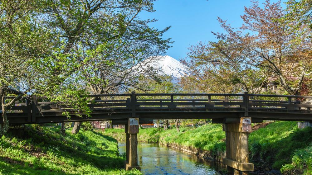 ▲ 忍野八海,富士山腳下的傳統村落,以八口清澈泉水而聞名,每一處都像藏在自然中的鏡子,倒映著藍天與雪山。 在木屋與小橋間漫步,你會發現地道的日式小吃攤藏匿其中:烤年糕、煎餅、溫熱炸魚餅……是拍照和「嘗在地味」的雙重樂趣。